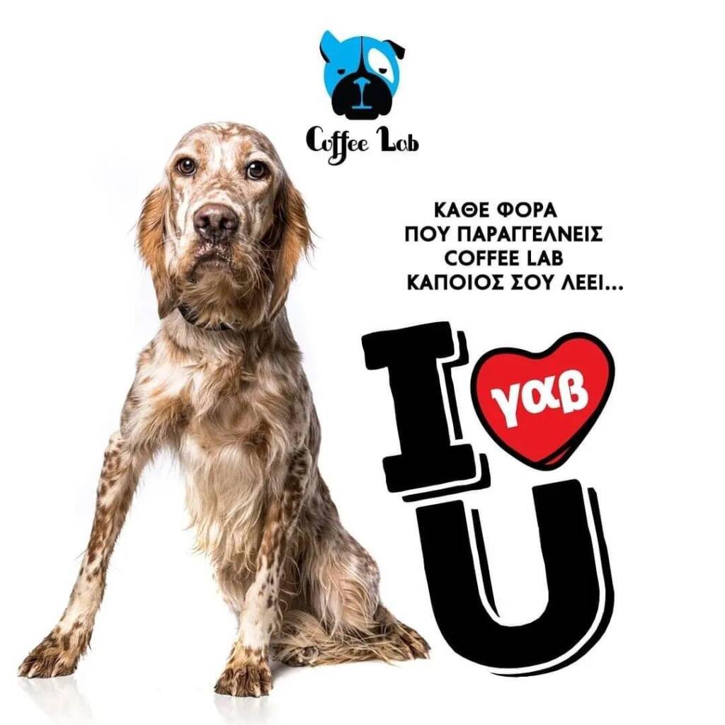 Κάθε φορά που παραγγέλνεις στα Coffee Lab Κοζάνης ακούς να σου λένε “I γαβ U!” Γιατί τα Coffee Lab προχωρούν στην εικονική υιοθεσία αδέσποτων σκύλων, από το πρότυπο Καταφύγιο @saveagreekstray . Έτσι, κάθε φορά που παραγγέλνεις τον αγαπημένο σου καφέ, συμβάλλεις κι εσύ στην υιοθεσία τους. Mε κάθε σου γουλιά, τα κάνεις μια αγκαλιά!