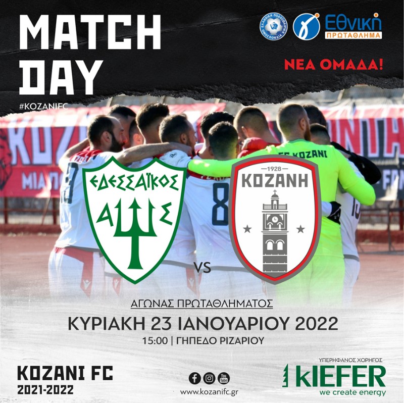 Ολοκληρώνεται σήμερα η προετοιμασία της ομάδας μας ΦΣ Κοζάνη για το εκτός έδρας παιχνίδι της Κυριακής (23/01, 15.00, Δημ. Γήπεδο Ριζαρίου) με τον Εδεσσαϊκό, στα πλαίσια της 12ης και 1ης του δεύτερου γύρου αγωνιστικής, του πρωταθλήματος της Γ’ Εθνικής. Πρόκειται για ντέρμπι κορυφής μιας και οι δύο ομάδες βρίσκονται στην 2η θέση της βαθμολογίας με 19 βαθμούς, στην πρώτη θέση ο Μακεδονικός με 24 βαθμούς.