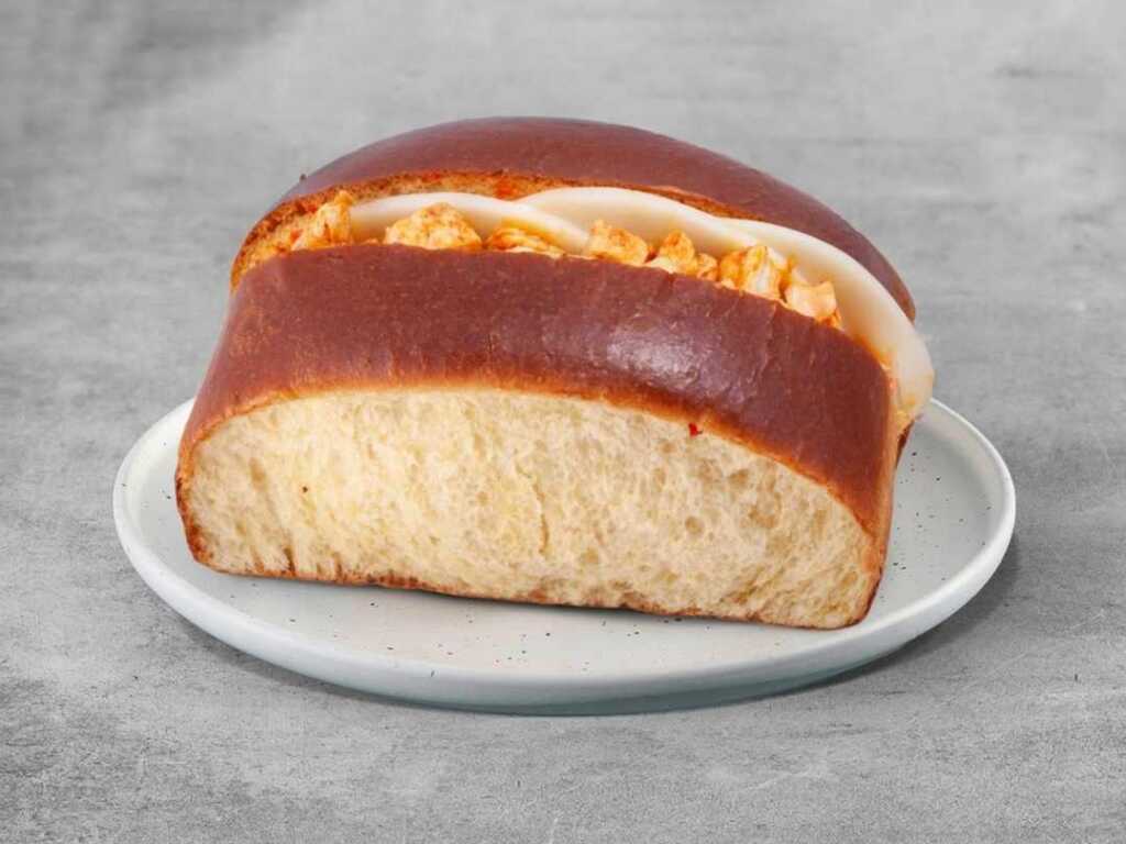 Με κοτόπουλο, provolone & harissa mayo σε brioche βουτύρου