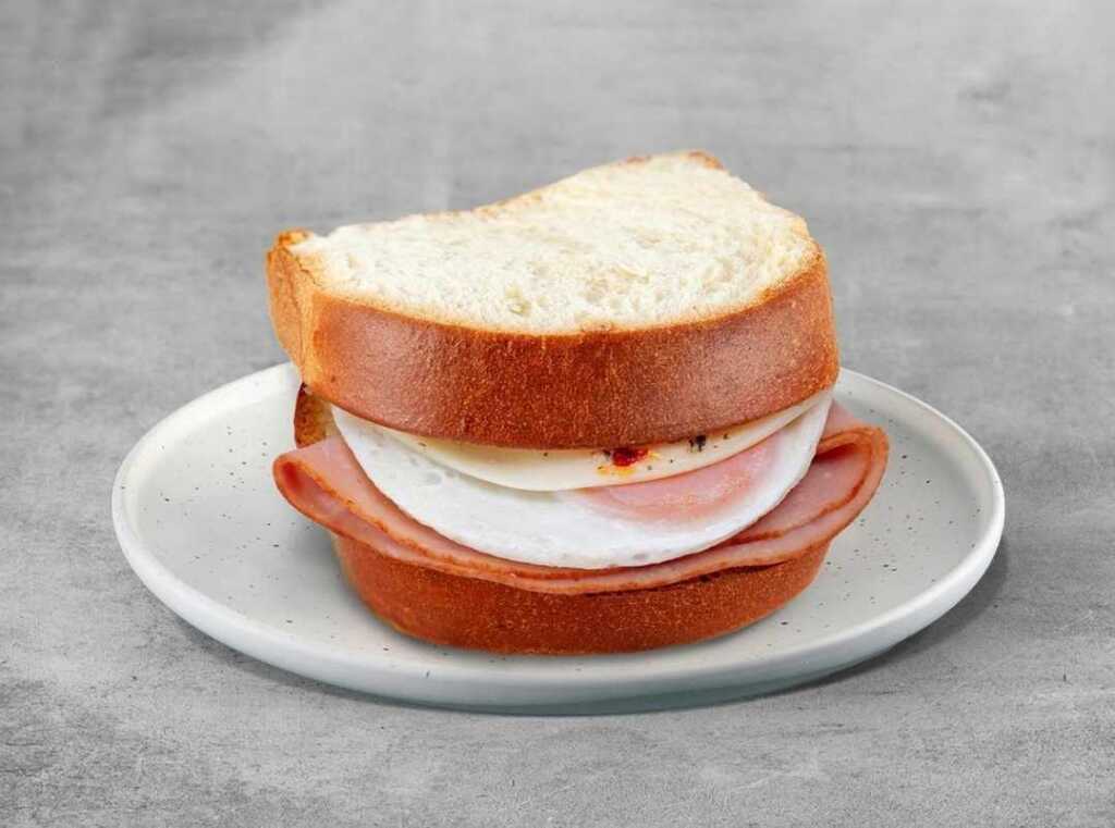 Με τηγανητό αυγό, ζαμπόν, τυρί provolone, cheese mix & herbsmayo sauce σε ψωμί brioche