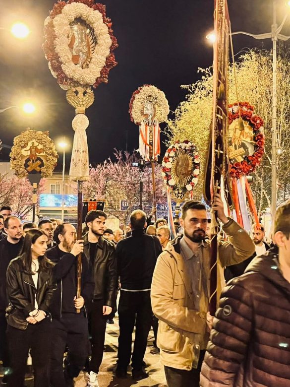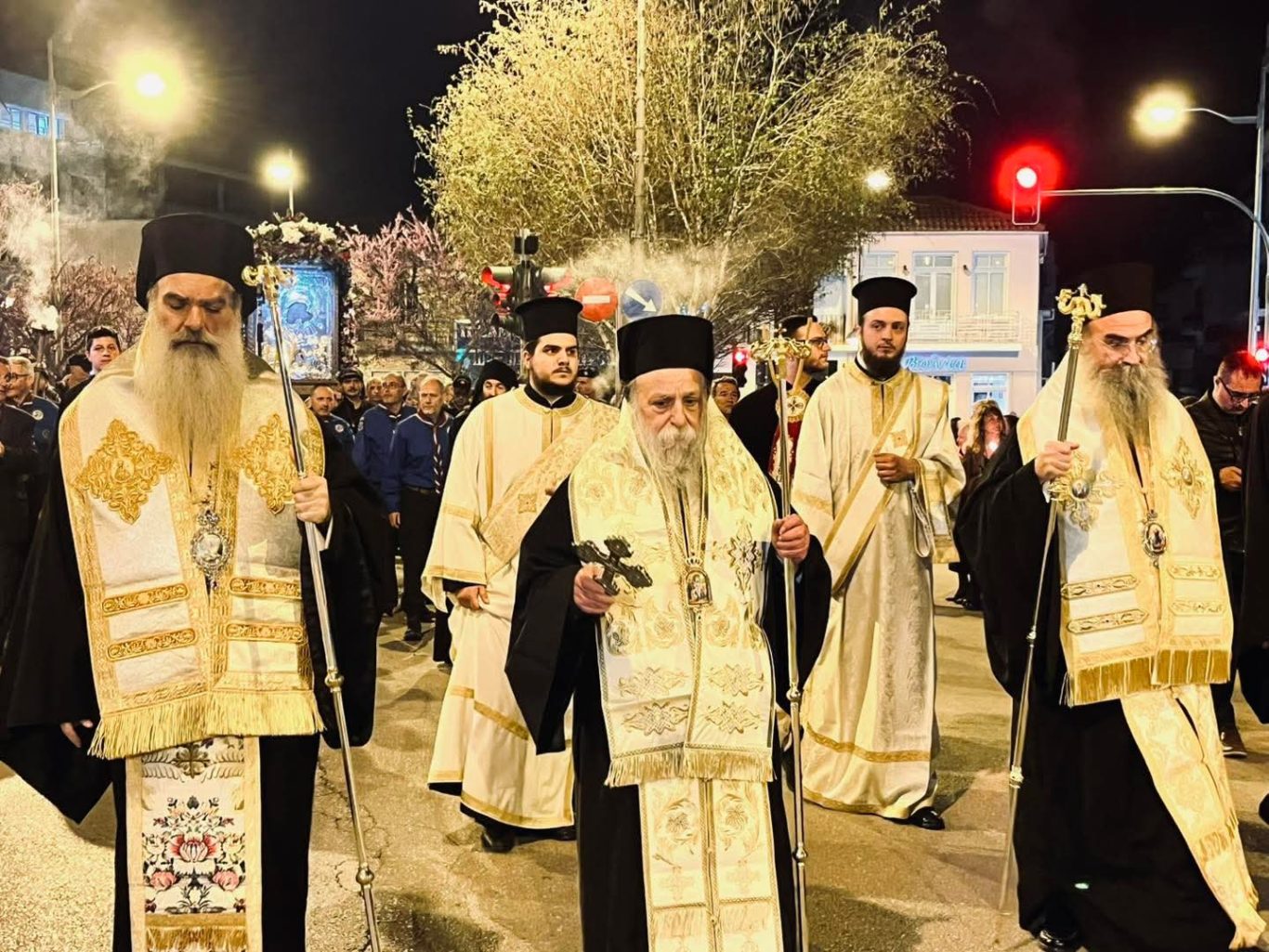 Στους δρόμους της πόλης, πλήθος πιστών συνόδευσε την πομπή, ενώ τη δική τους ξεχωριστή παρουσία έδωσαν πολιτιστικοί σύλλογοι, φιλαρμονικές και κληρικοί, δημιουργώντας μια κατανυκτική αλλά και ταυτόχρονα επιβλητική ατμόσφαιρα.