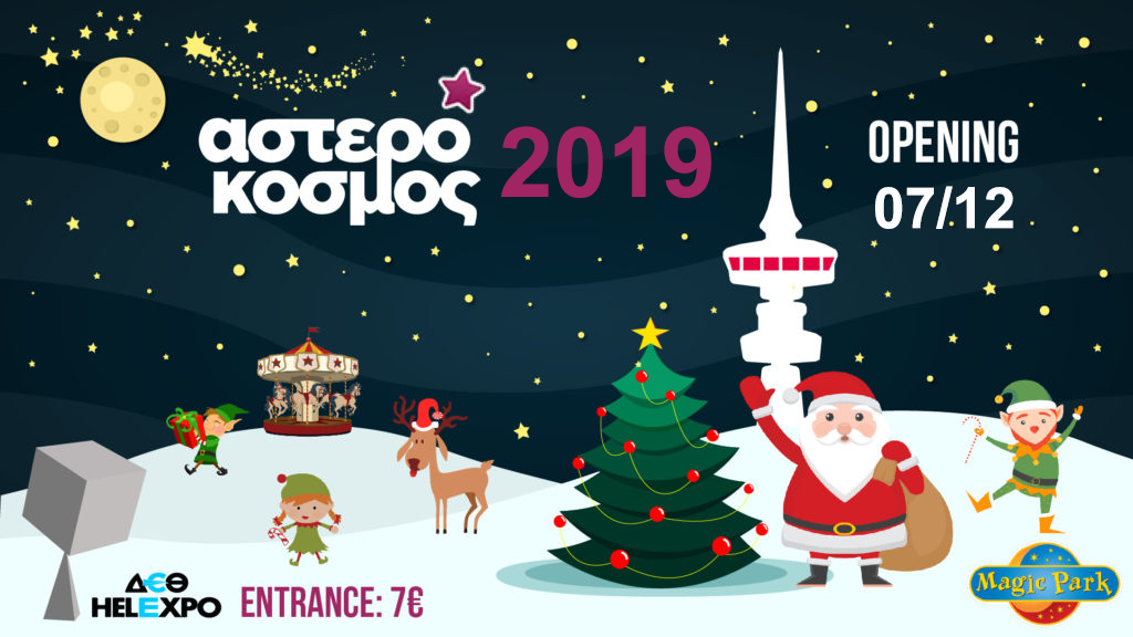 Ο Αστερόκοσμος επιστρέφει και φέτος στις εγκαταστάσεις της Διεθνούς Έκθεσης Θεσσαλονίκης από τις 7 Δεκεμβρίου 2019 για να χαρίσει μοναδικές χριστουγεννιάτικες στιγμές χαράς και διασκέδασης.