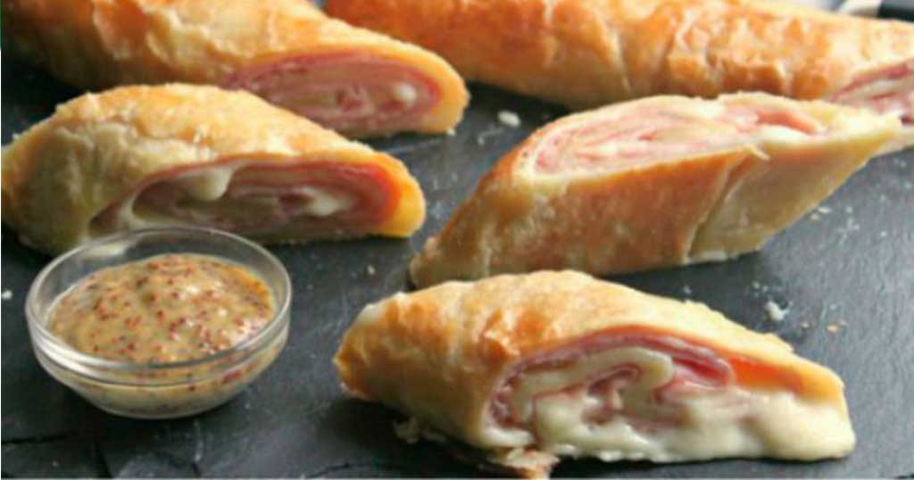 - Αλείφετε τα σφολιατάκια με λίγο βούτυρο και τοποθετείτε στο κάθε κομμάτι από μία φέτα ζαμπόν και μία φέτα τυρί.