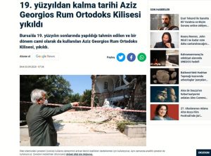 Τον ιστορικό ορθόδοξο ναό του Αγίου Γεωργίου στην Προύσα, γνωστού και ως η «Αγιά Σοφιά της Μπούρσα» κατεδάφισαν το βράδυ της Τετάρτης οι τουρκικές αρχές. Η εκκλησία είχε εγκαταλειφθεί στην τύχη της.